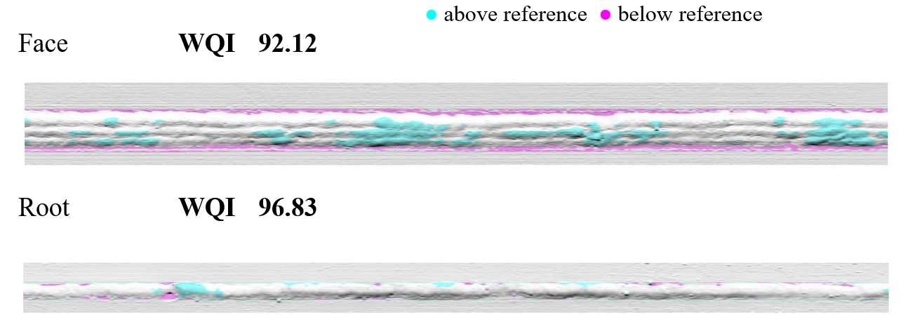 Рис.4. Визуализация отклонений лицевой (Face) и корневой (Root) формы поверхности сварного шва от эталона